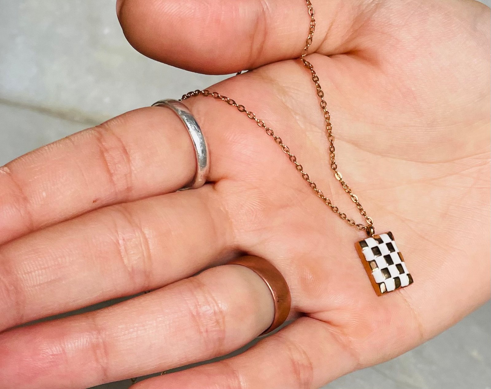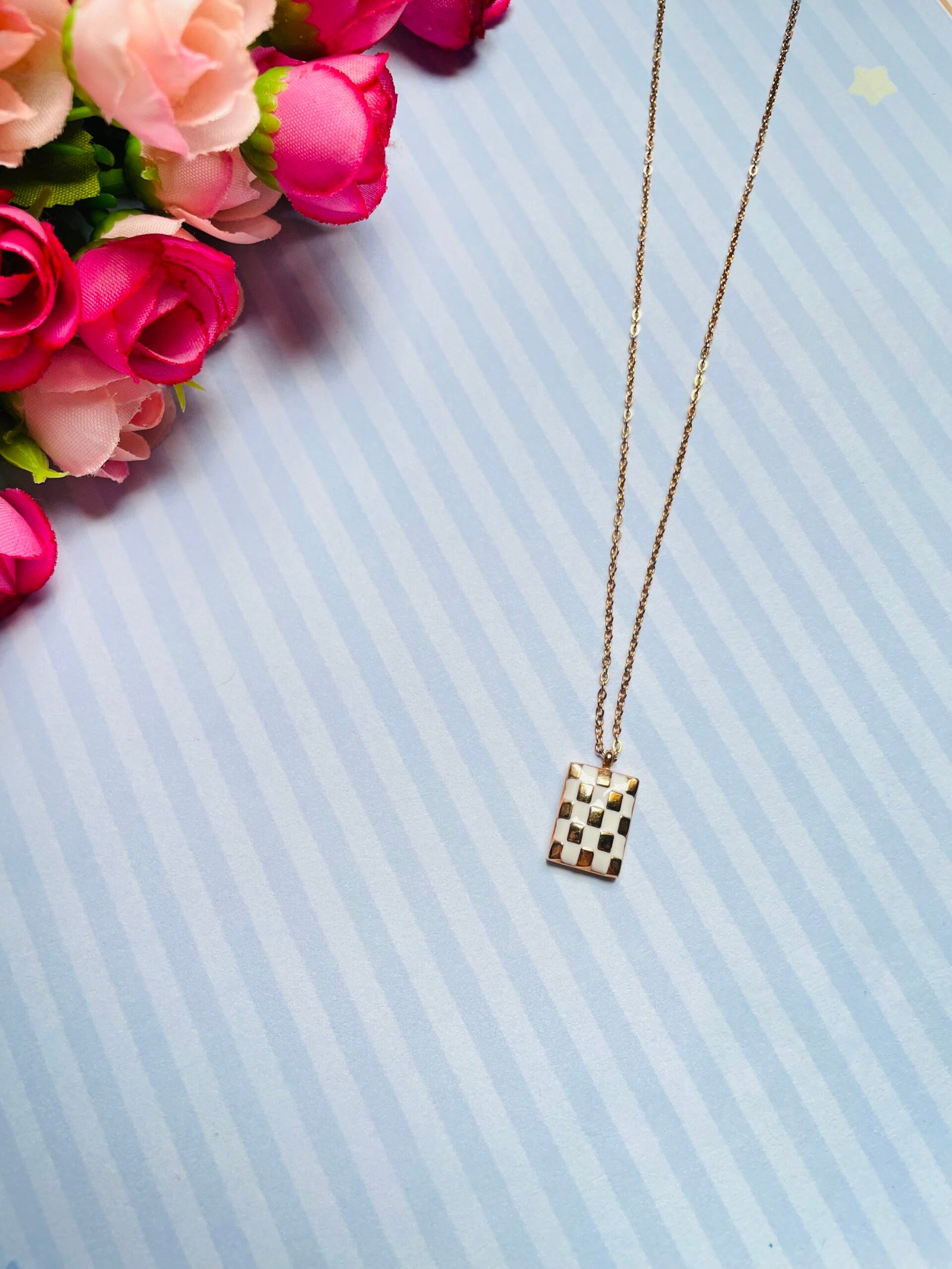 Checkered Elegance Pendant Necklace