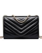 Introducing the Estelle Black Sling, a statement piece that embodies timeless elegance and modern design. This exquisite black quilted bag features a striking chevron pattern that creates a dynamic visual effect, making it a standout accessory in any wardrobe. Crafted from high-quality materials, the bag’s soft, textured finish is both luxurious and durable, ensuring it remains a favorite for years to come.
