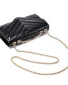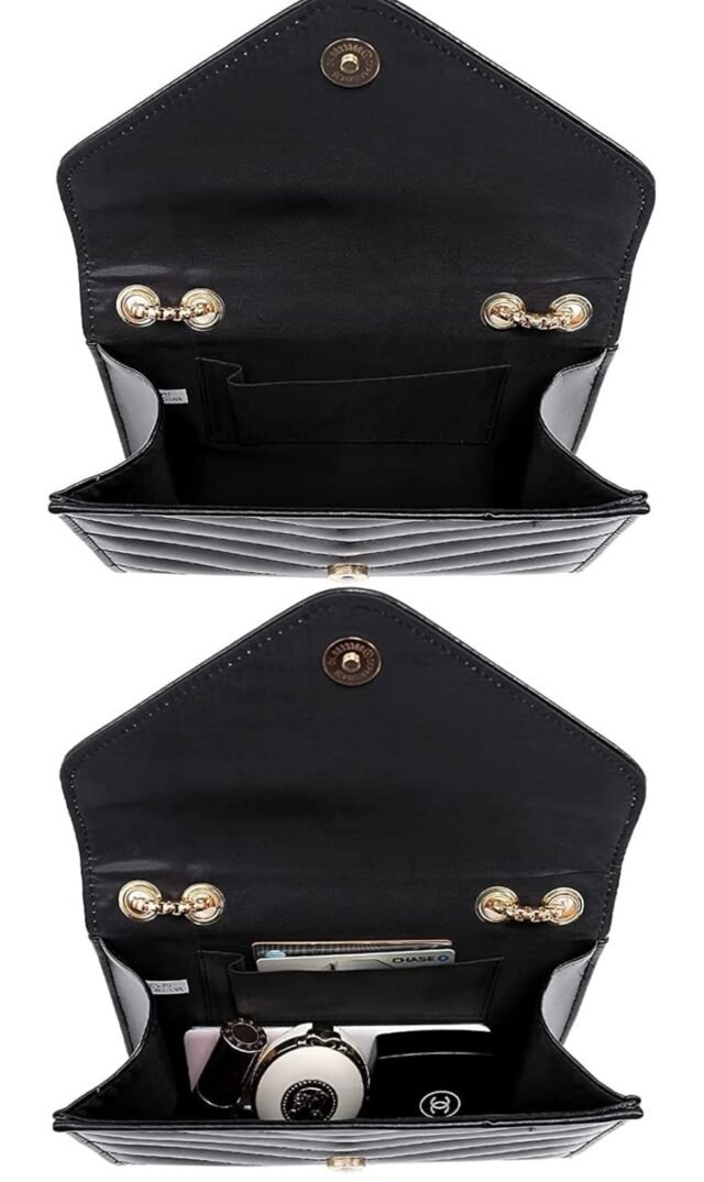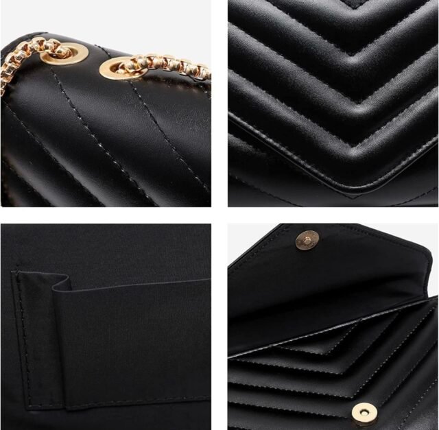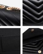 Inside, the Midnight Chevron offers a spacious, well-organized interior that can easily accommodate your essentials, including a wallet, phone, keys, and makeup. The bag’s secure closure ensures your belongings stay safe, while the sleek silhouette maintains its shape, no matter how much you carry.