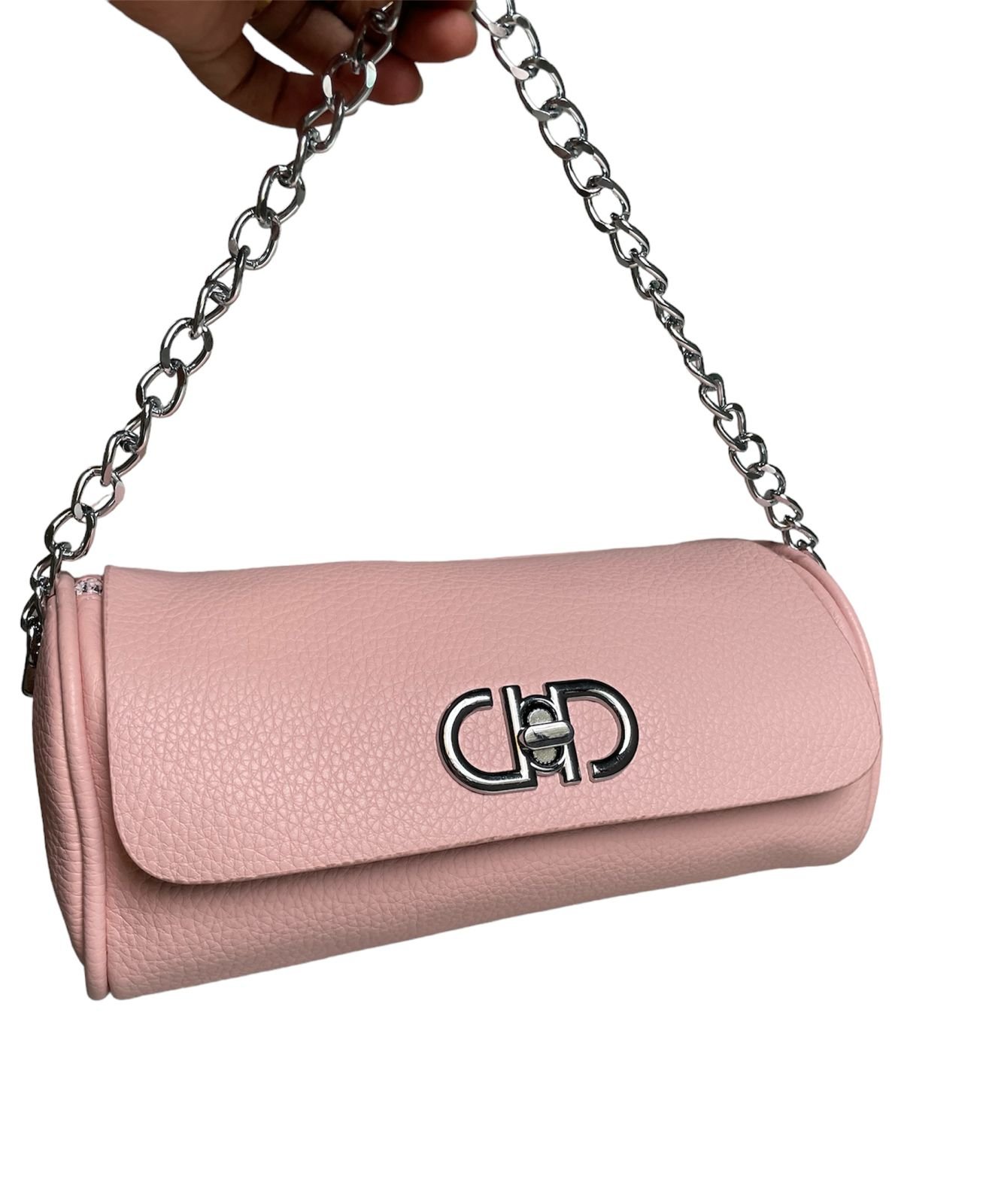 Introducing the “Pink Allure” bag, a perfect blend of elegance and contemporary style. This exquisite accessory is crafted from high-quality faux leather, featuring a beautiful pink hue that adds a touch of sophistication to any outfit. The sleek design is complemented by polished silver-tone hardware and a stylish chain handle, offering both durability and a modern edge.