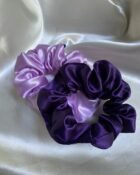 Introducing the Silk Elegance Scrunchies Duo, a perfect blend of luxury and style for your hair. This exquisite set features two satin scrunchies in beautiful lavender and deep violet hues, adding a touch of sophistication to any look. Crafted from premium satin, these scrunchies are designed to be gentle on your hair, minimizing breakage and preventing creases.