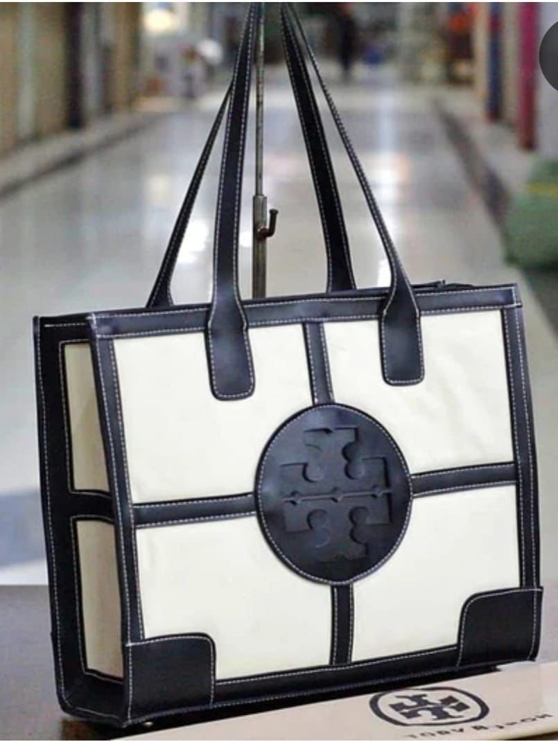 LATEST TORY BURCH ELLA CANVAS QUADRANT TOTE BIG SIZE IN TOWN