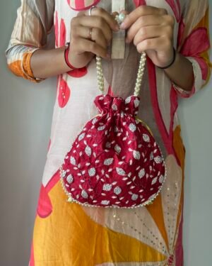 Handwork on potli beautiful pearl handle